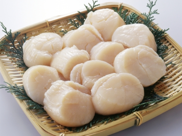 ②オホーツク海産のトロリとした甘みとぷりぷりの食感が楽しめ、お刺身でも食べられる3Sサイズ(直径3.5~5cm)の”ほたて貝柱” ※ほたての食べ方 http://www.otaru-bk.or.jp/hotate.pdf