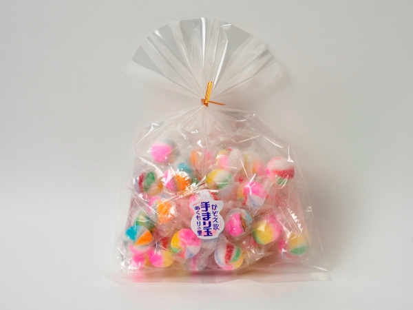 小樽市のおいしい水を使い、フルーツ味にして、手まり玉のように可愛く色細工した飴は、二代目社長の意思を守り、人工甘味料は使わず北海道産の甜菜(ビート)から採れた砂糖を使用していますので、カラフルで可愛い手まり玉は、長く愛される人気商品です。