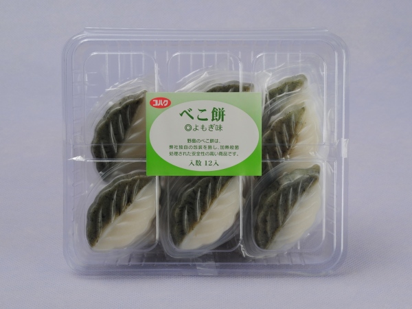 木の葉形のべこ餅は北海道にしかない和菓子です。野島製菓が自信を持ってお届けする、北海道伝統和菓子のべこ餅よもぎ味。いつでも美味しく食べていただけるように、独自の密着包装で熱殺菌処理を施し1つ1つの小分けになった安心のパッケージ製品です。